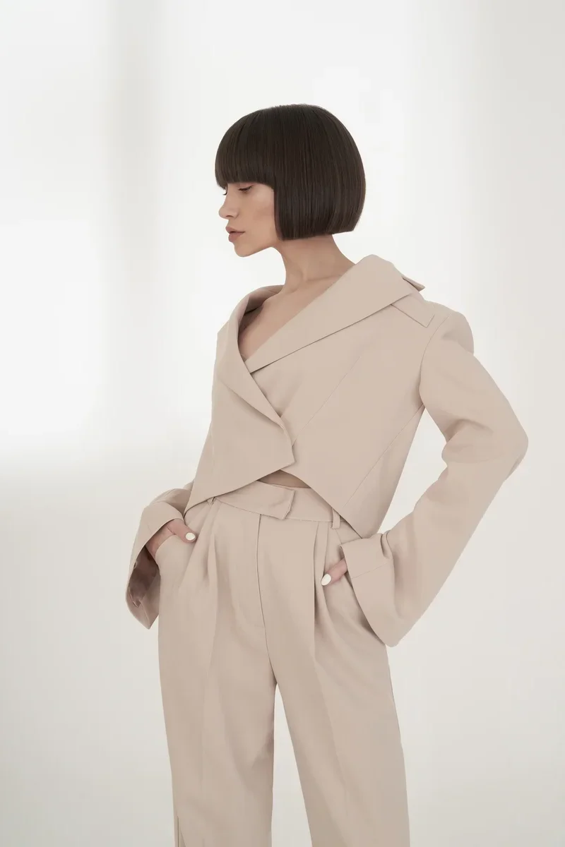 The Ultimate Staple for Effortless Chic. For those who appreciate clean lines and modern style, the Minimalist Tailored Blazer is a wardrobe essential. This blazer is cut from a smooth, structured fabric that offers a flattering, streamlined silhouette. It features a classic two-button front, sharp notched lapels, and lightly padded shoulders for a refined finish. The versatile beige tone makes it easy to pair with almost anything, from jeans and a t-shirt for a smart-casual look to a pencil skirt for more formal occasions. An inner lining ensures a comfortable fit that drapes perfectly. Available in Soft Beige, Black, and Dusty Rose.